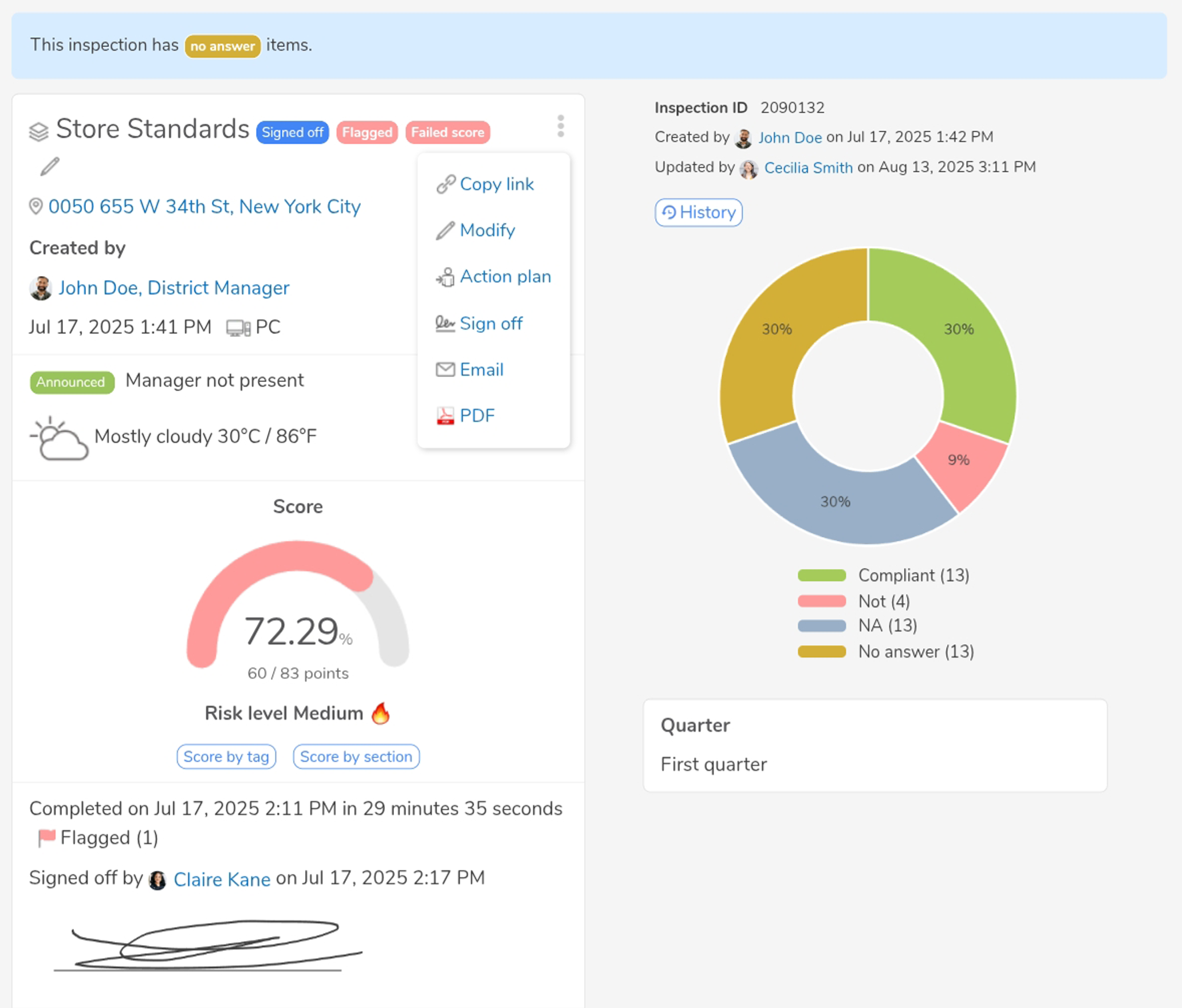 Take photos and videos and share notes. Attach photos to inspections, tasks, and corrective actions. A picture is worth a thousand words.